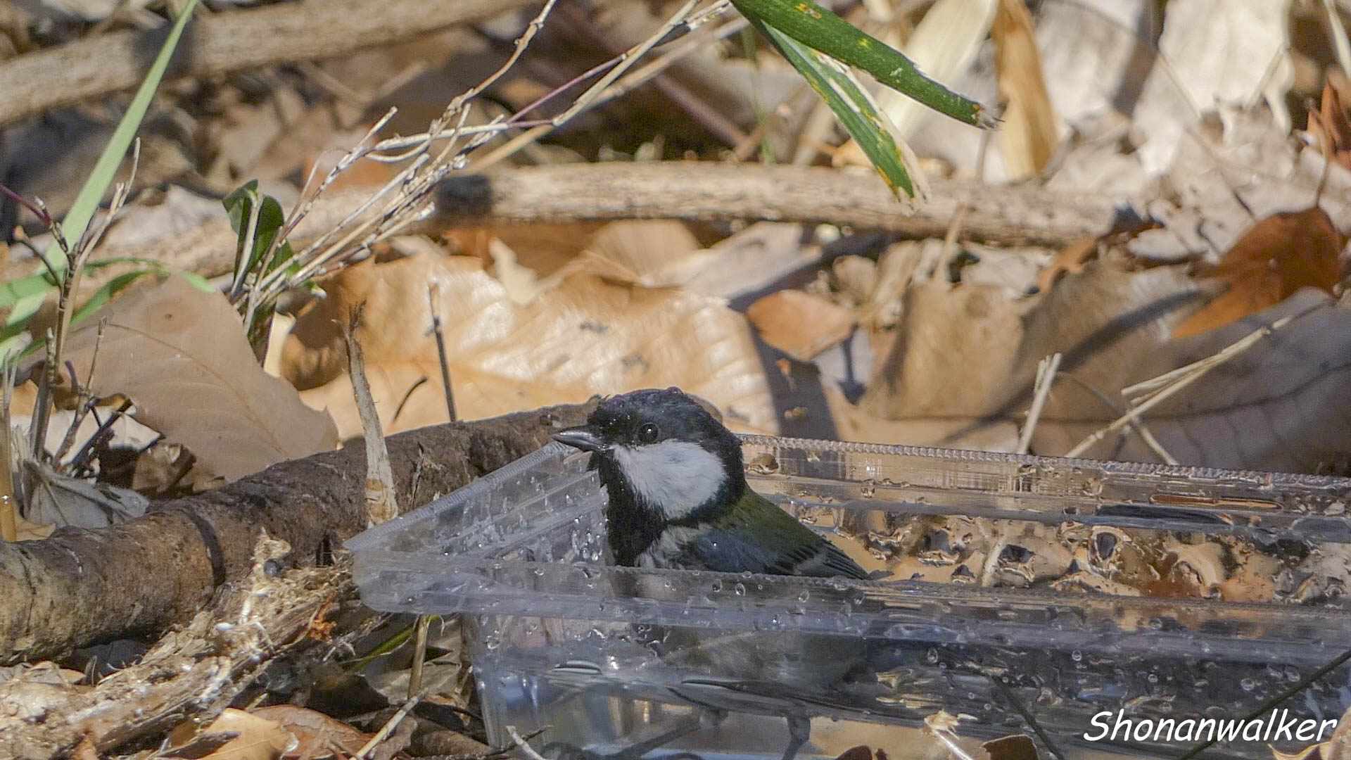 シジュウカラはおそらく混群に属する個体であって水場があることを認知していなかったはずである。水浴び好きであるメジロでさえ、やって来ていない。