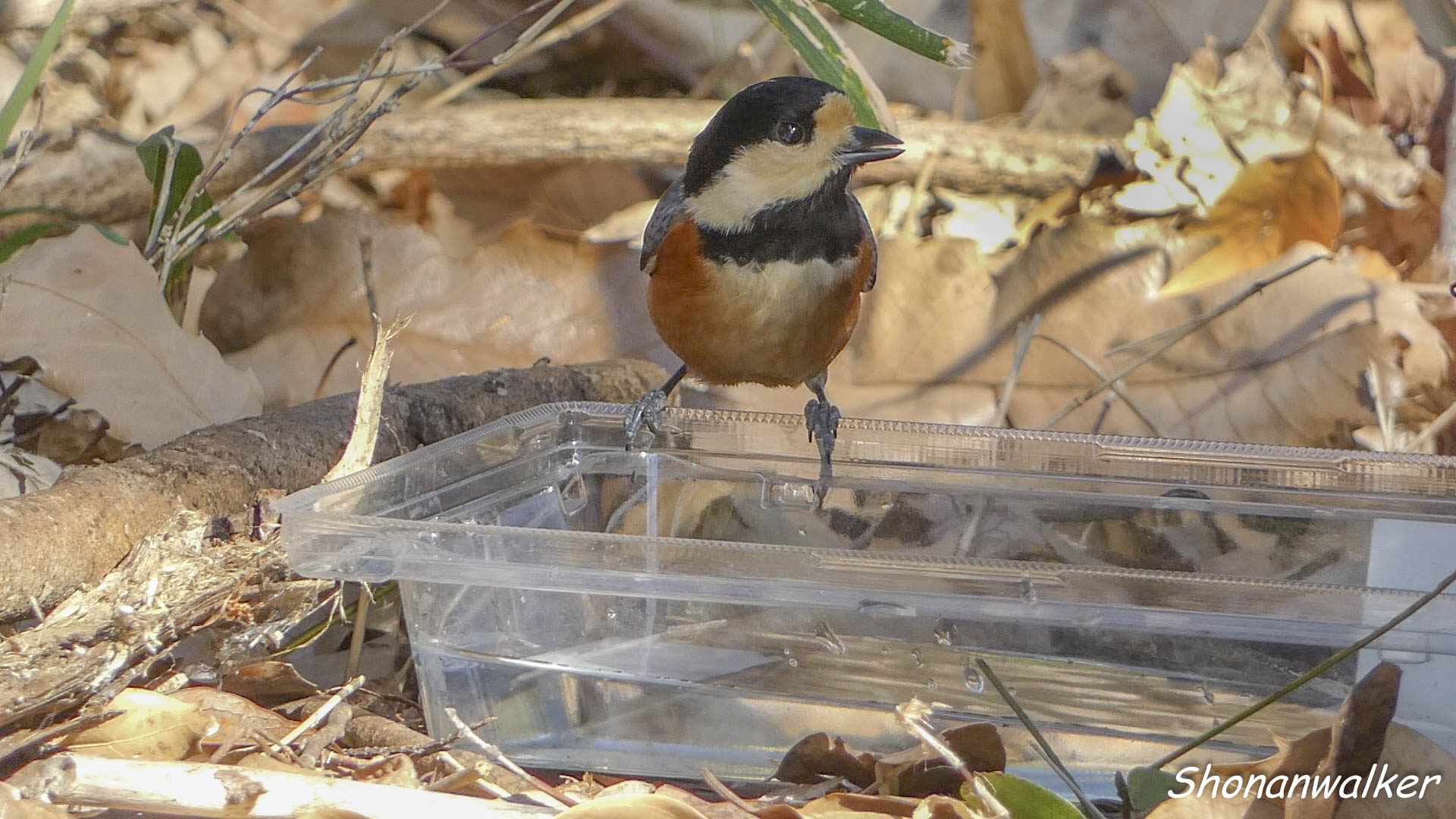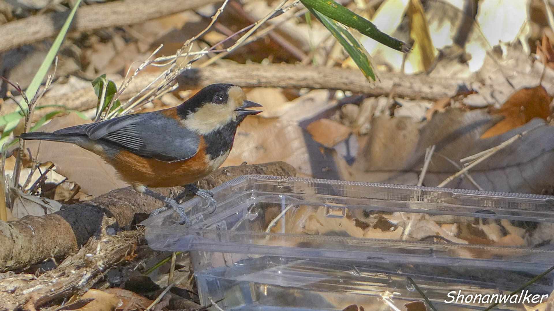 プラ水場を常設しているのではない。常設すれば採餌に集まる野鳥たちにアピールできるのであるが、自分の所有地ではないから常設には無理がある。