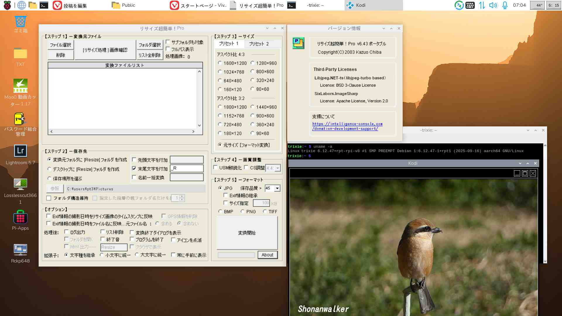 リサイズ超簡単!はx64 Windowsの時代は利用していたが、Raspi5-Trixieが安定期に入り【リサイズ超簡単!Pro v6.43ポータブル版】が