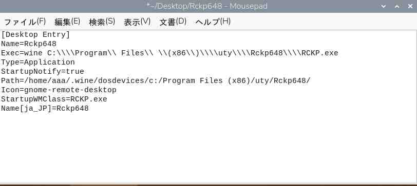 3.【Rckp648.desktop】を右クックし【Mousepad】で開く