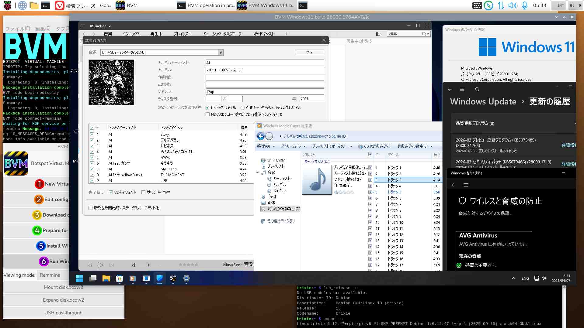 仮想BVM 25H2 build 26200.6899 AVG版試運転