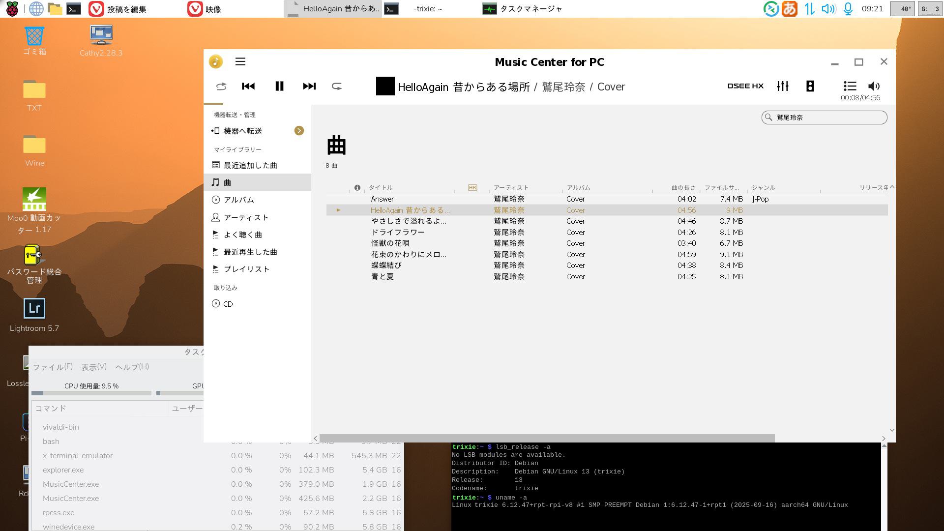Raspi5+BVMでSony【Music Center for PC】2.7.3を使う