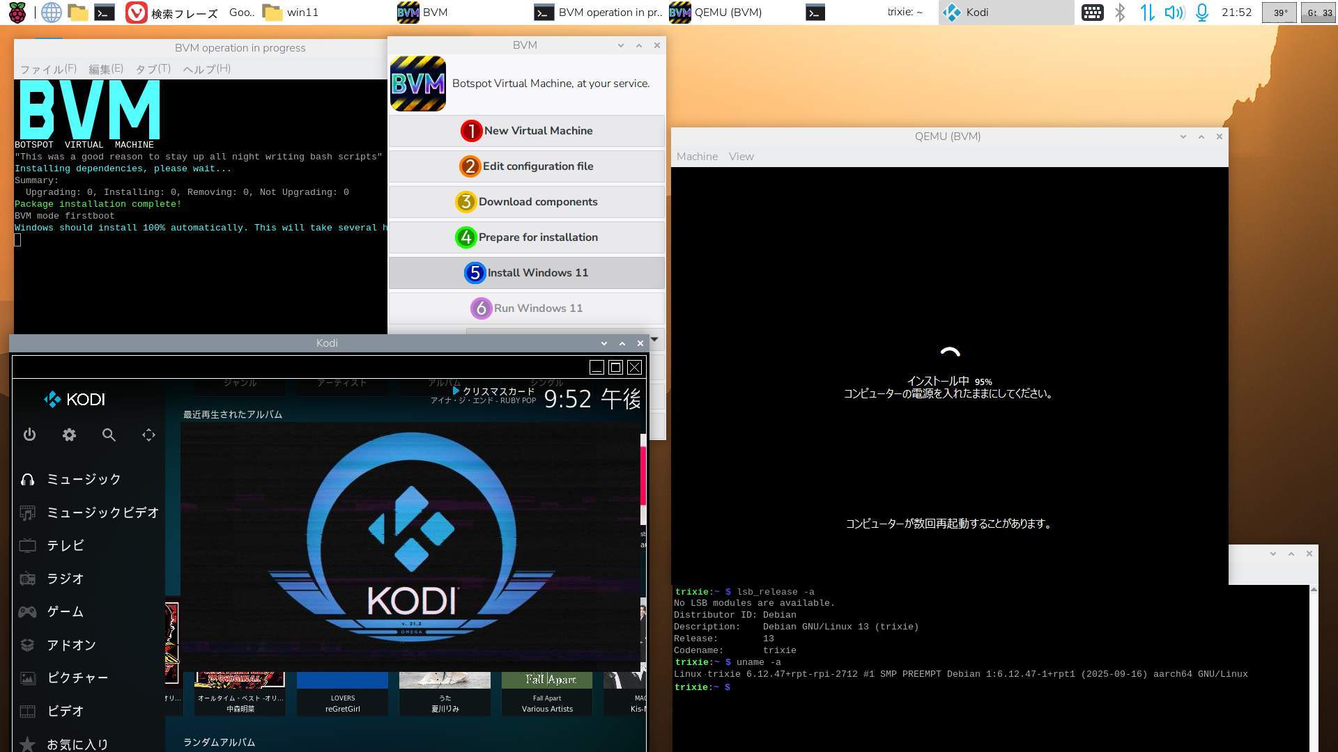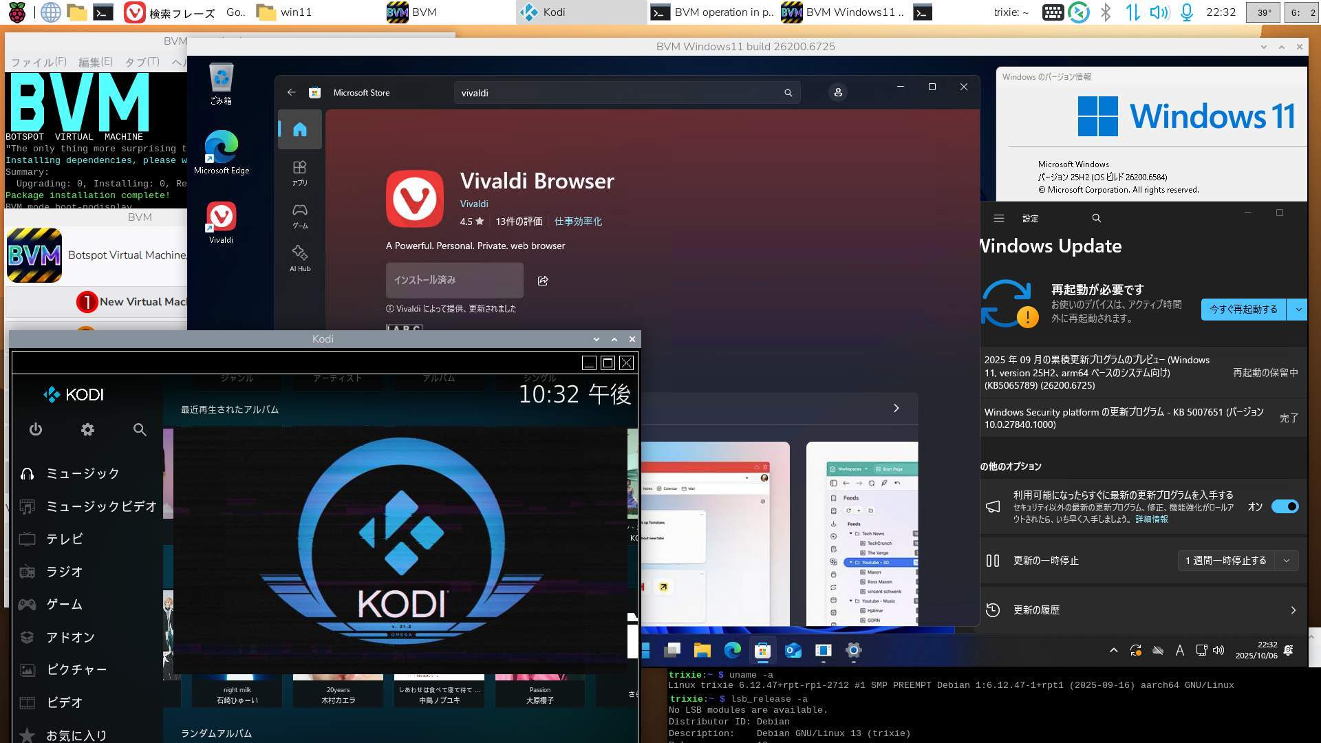 正常なBVM版Windows11が【trixie】Desktop でもインストール・Windows Updateが可能である。そして一連のインストール過程2.5時間の作業中、【trixie】Desktop は正常に動作してOSは落ちなかった。(小生その時間帯、寝落ちていたが・・・)