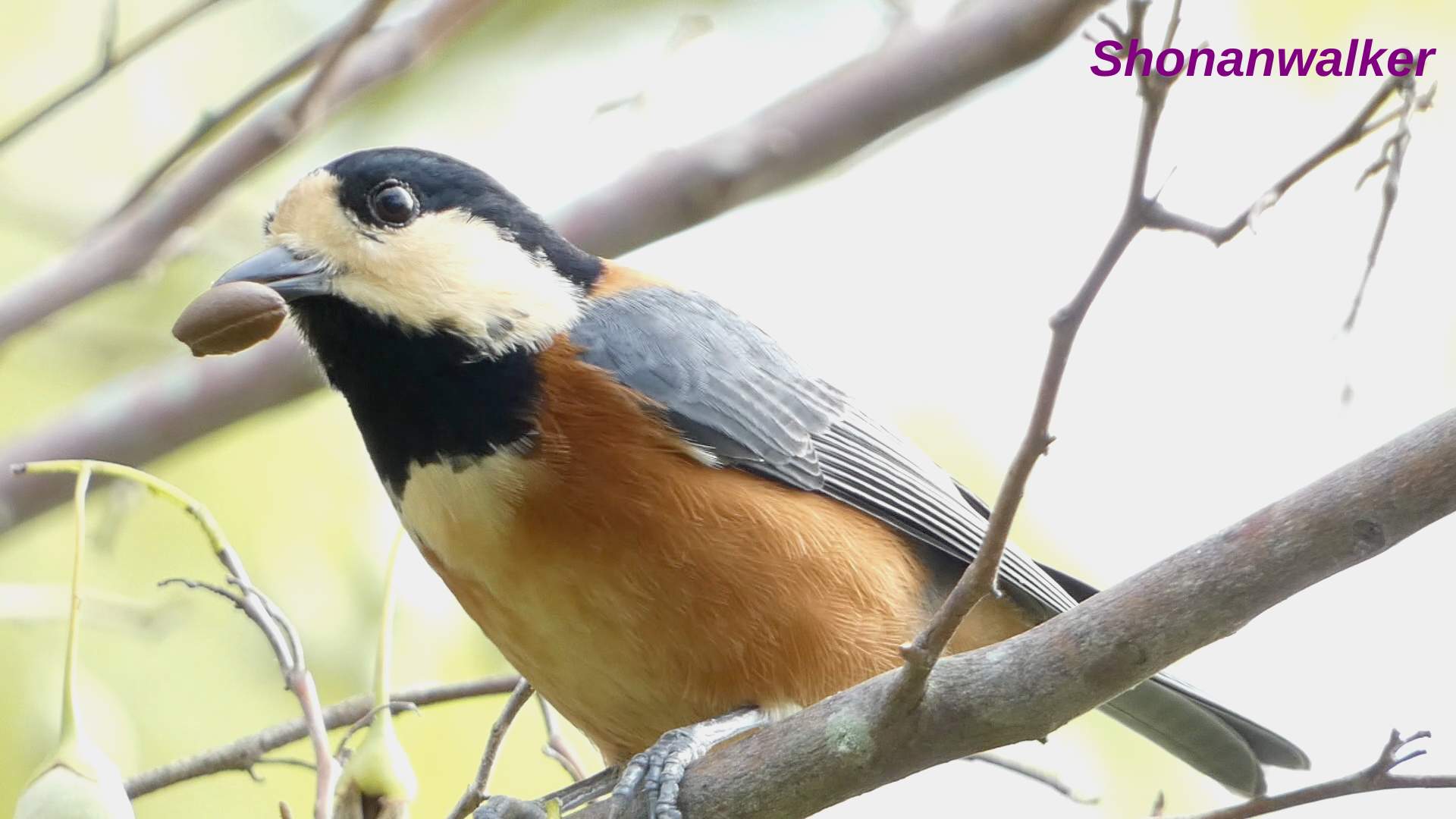 秋の味覚? “かぶりつき”ヤマガラ