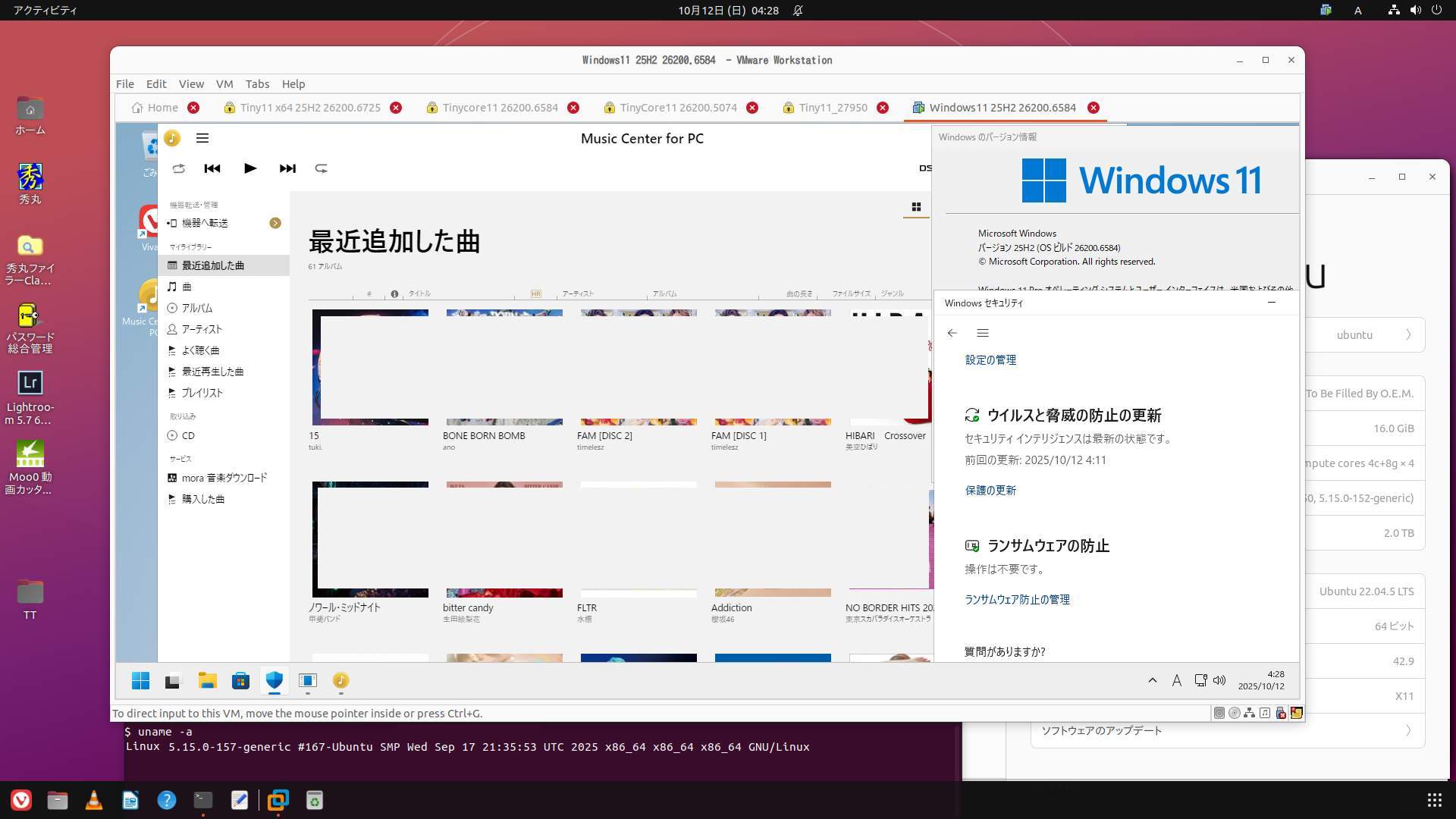 x64 仮想Tiny11 25H2 build 26200.6899試用中