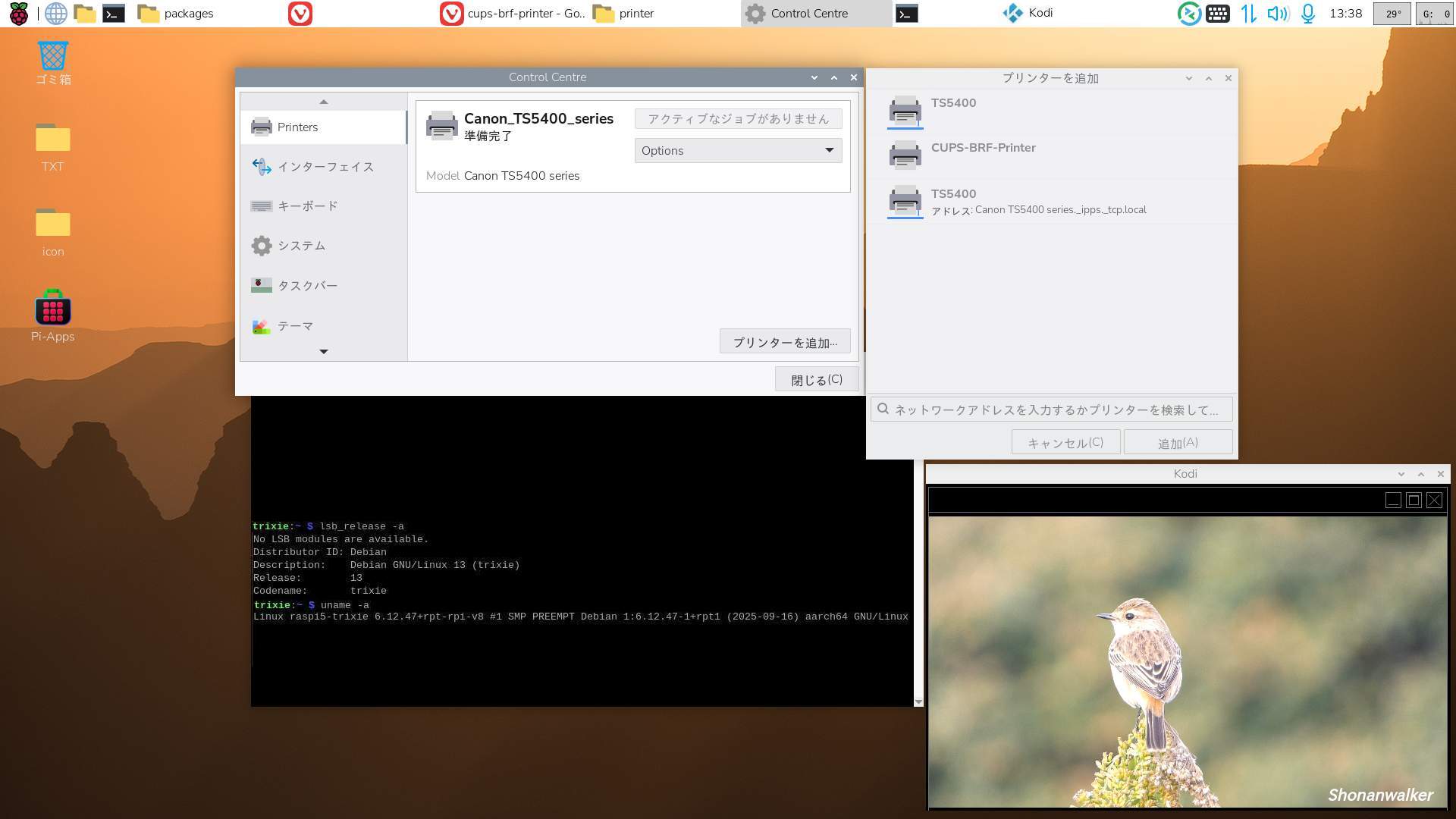 Raspberry Pi OS Trixie と プリンター Canon TS5430