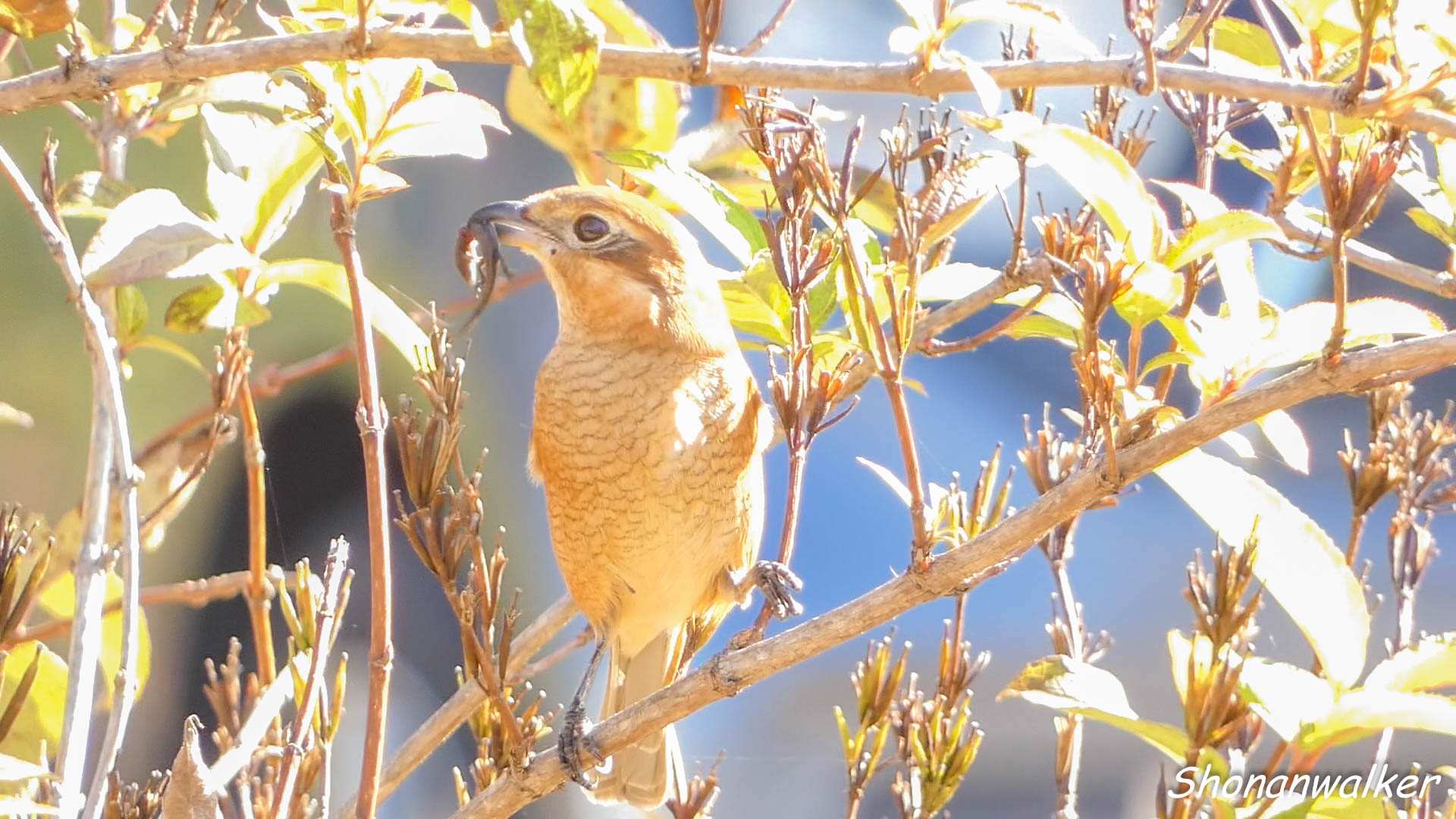 はやにえ作りに精を出す勝者雌モズ