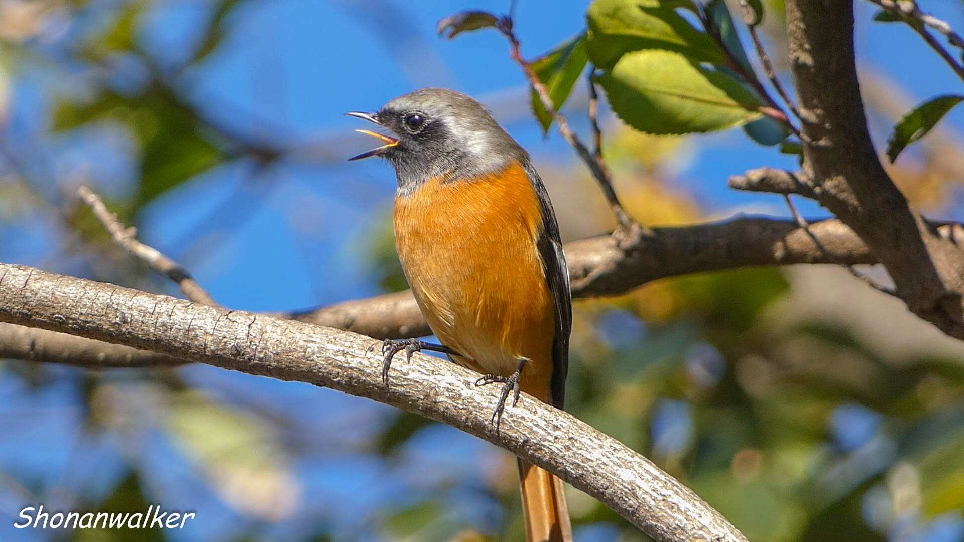 散歩道 駐輪場のイソヒヨドリ
